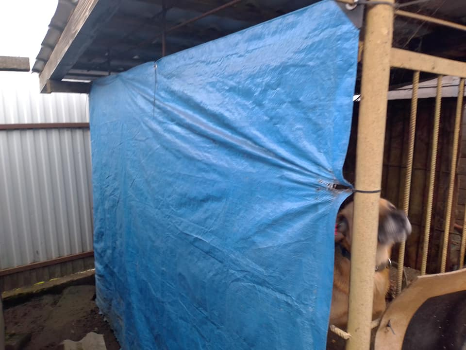 "Ідуть дощі - у вольєрах калюжі, бо дахи в дірках чи взагалі зроблені методом накидування зверху аби чого, першого, що знайшлося під рукою.... Вітер і холод - собаки мерзнуть і не мають жодного куточка, аби сховатися.... Адже є вольєри - просто металеві каркаси чи обтягнуті сіткою. Вони продуваються з усіх сторін... Зроблені нашими дівчачими руками "стіни" з брезенту чи коврів і доріжок - не рятують собак від холоду та опадів", - йдеться у дописі.