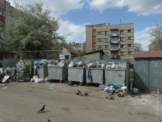 За словами Ірини Швидько, що мешкає на Довженка 9-б, численні звернення до перевізника «АТП 0928» не дають ніякого результату. «Останній раз в нас сміття вивозили 24 квітня. Коли дзвонимо до перевізника, там говорять, що не може такого бути, щоб 4 дні не вивозили, або що машина зламалась». Як розповідає пані Ірина, таке відбувається у них систематично. Габаритне сміття взагалі рідко вивозять. У службі оперативного реагування міськвиконкому мешканцям порадили збирати підписи і звертатись до міського голови. «Після свят будемо це робити, бо набридло це звалище перед очима», – каже Ірина Швидько.
