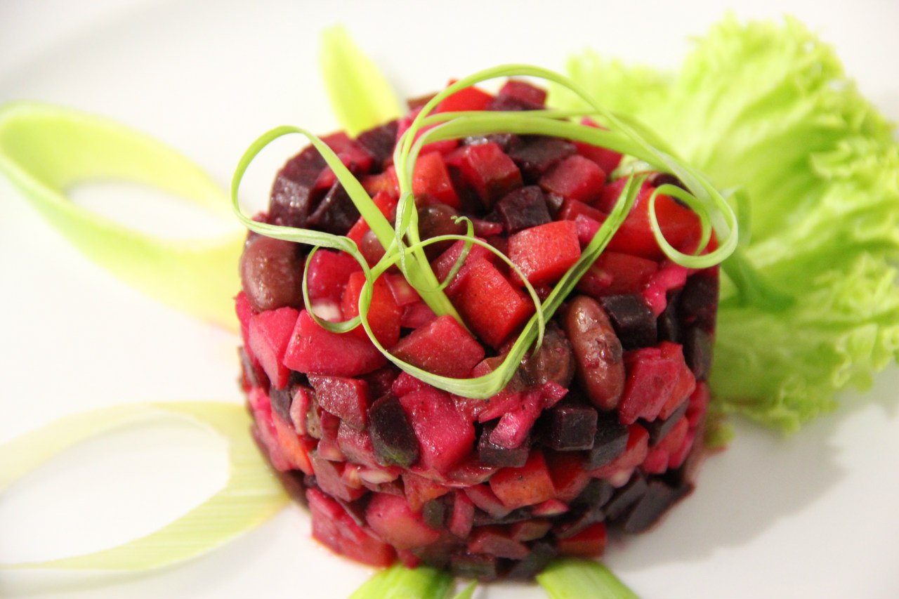 У ресторані вам запропонують традиційний салат «Вінегрет» (18 грн.), салат з капусти з гарбузовим насінням (18 грн.). Поціновувачі вишуканих страв можуть спробувати салат із морепродуктами (55 грн.) чи салат з вугром (65 грн.). Для особливо вибагливих запропонують карпачо з буряка та чорносливом (23 грн.), конвертик з капустою (25 грн.), пасту з овочами (28 грн.). Гості ресторану оцінять традиційний смак оселедця зі смаженою картоплею (20 грн.), а також запашної грибної юшки (30 грн.).