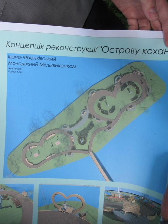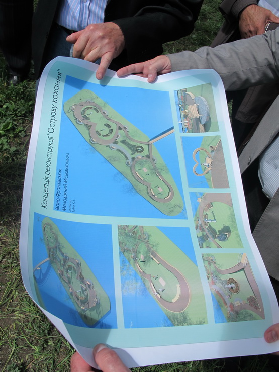 28 травня, на острові кохання в Івано-Франківську, відбулася виїзна нарада. Комунальники та архітектори на чолі з міським головою Віктором Анушкевичусом говорили про те, як можна облаштувати острів.