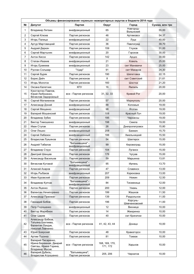 Майже мільярд гривень – це сума, яка взята з Фонду національного розвитку для округів відверто провладних депутатів, або позафракційних, які синхронно тиснуть на кнопки з Партією регіонів.