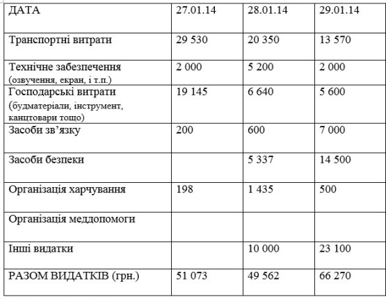 У середу, 29 січня, сума пожертв на підтримку Майдану в Івано-Франківську склала 56 501 грн., 1190 Є, 420 $, повідомили у Штабі національного спротиву в області.
