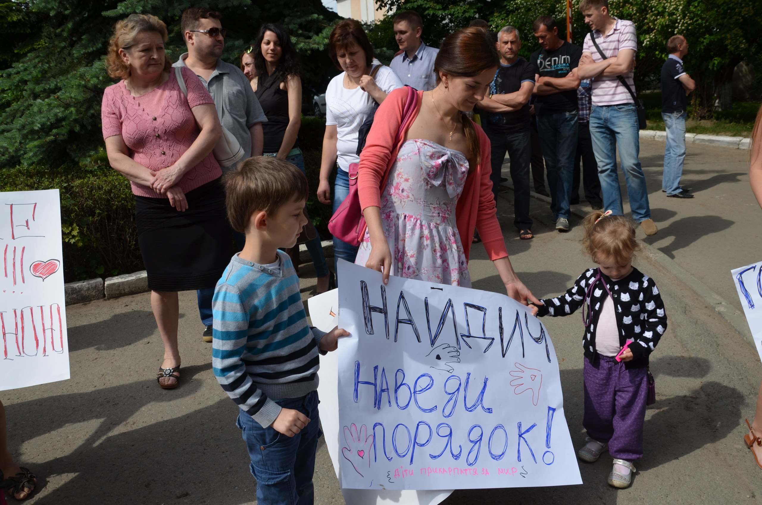 "Просимо керівництво СБУ навести порядок у нашому місті, країні. Наша організація бореться з корупцією уже давно, але ми не сідаємо в палатки, не палимо шини, вогні, ми боремося тому, що це наш громадянський обов’язок, - говорить голова громадської організації Галина Дебенко. - В мене крик душі. Я прийшла, щоб висловити свою думку, щоб в нас у державі був порядок. А ті хлопчики, які хочуть розмахувати автоматами, хай беруть автомат в руки і їдуть на Схід допомагати".