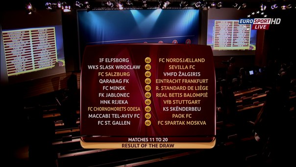 Сіяні: "Севілья" (Іспанія), "Стандард" (Бельгія), "Айнтрахт" (Німеччина), "Зальцбург" (Австрія), "Норшелланд" (Данія). Несіяні: "Ельфсборг" (Швеція), "Карабах" (Азербайджан), "Шльонск" (Польща), ФК "Мінськ" (Білорусь), "Жальгіріс" (Литва).