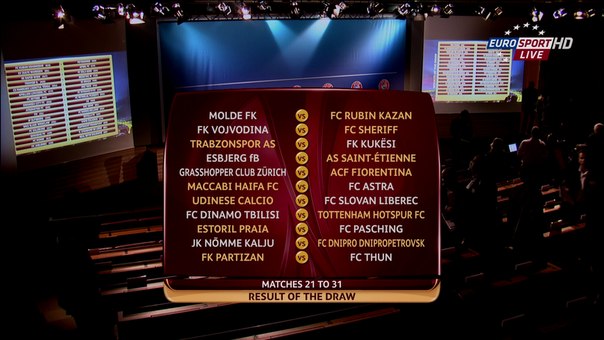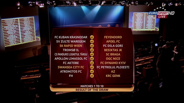 Сіяні: АПОЕЛ (Кіпр), "Брага" (Португалія), "Бешикташ" (Туреччина), "Рапід" Відень (Австрія), "Фейєнорд" (Нідерланди). Несіяні: "Кубань" (Росія), "Тромсе" (Норвегія), "Зюльте-Варегем" (Бельгія), "Пандурій" (Румунія), "Діла" (Грузія).