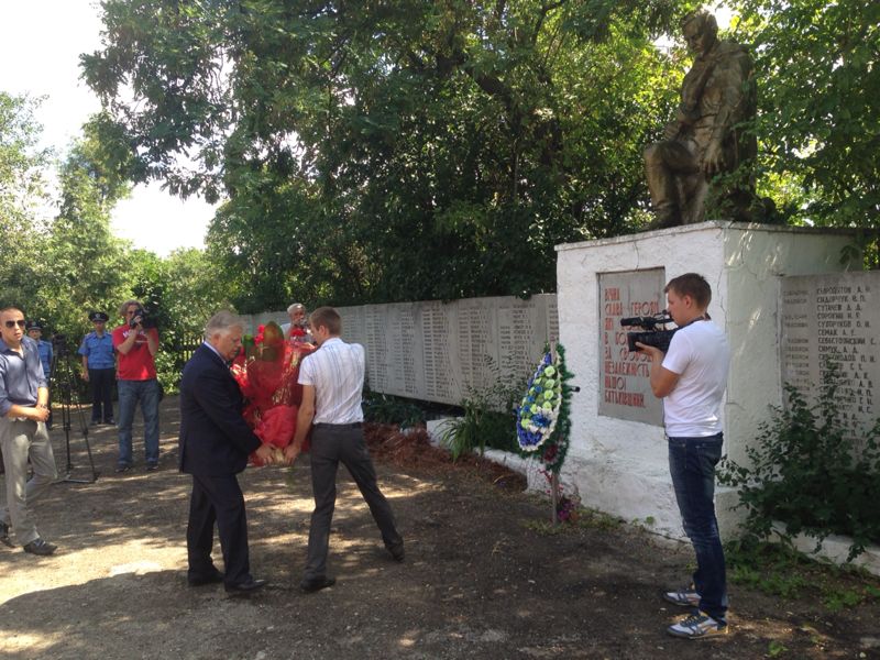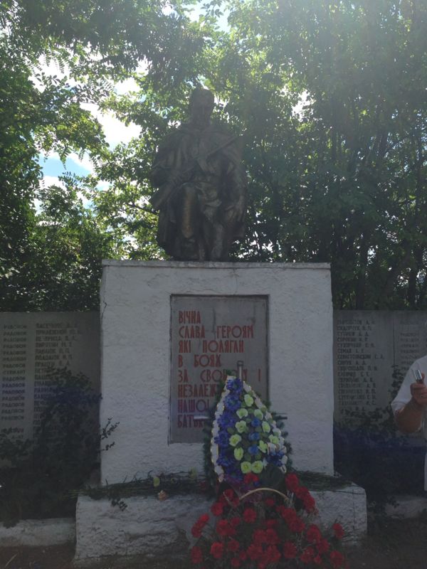До речі, перед стелою з іменами загиблих встановлено вже в наші часи звичайний християнський хрест і є вінок в синьо-жовтих кольорах. Оце й свідчить про ставлення місцевих жителів до полеглих з будь-якого боку.