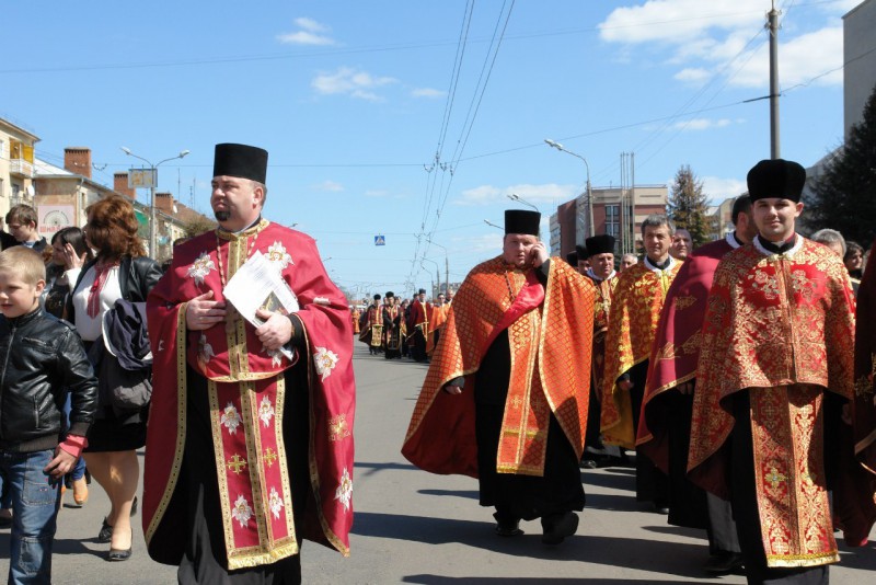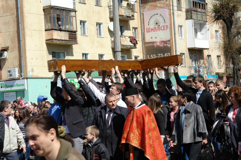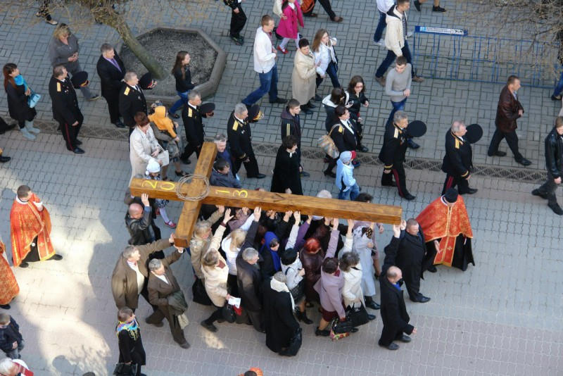 Хрест несли священослужителі, учителі шкіл, викладачі ВУЗів, студенти, пластуни, скаути та представники влади.