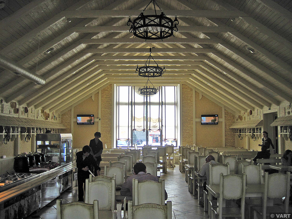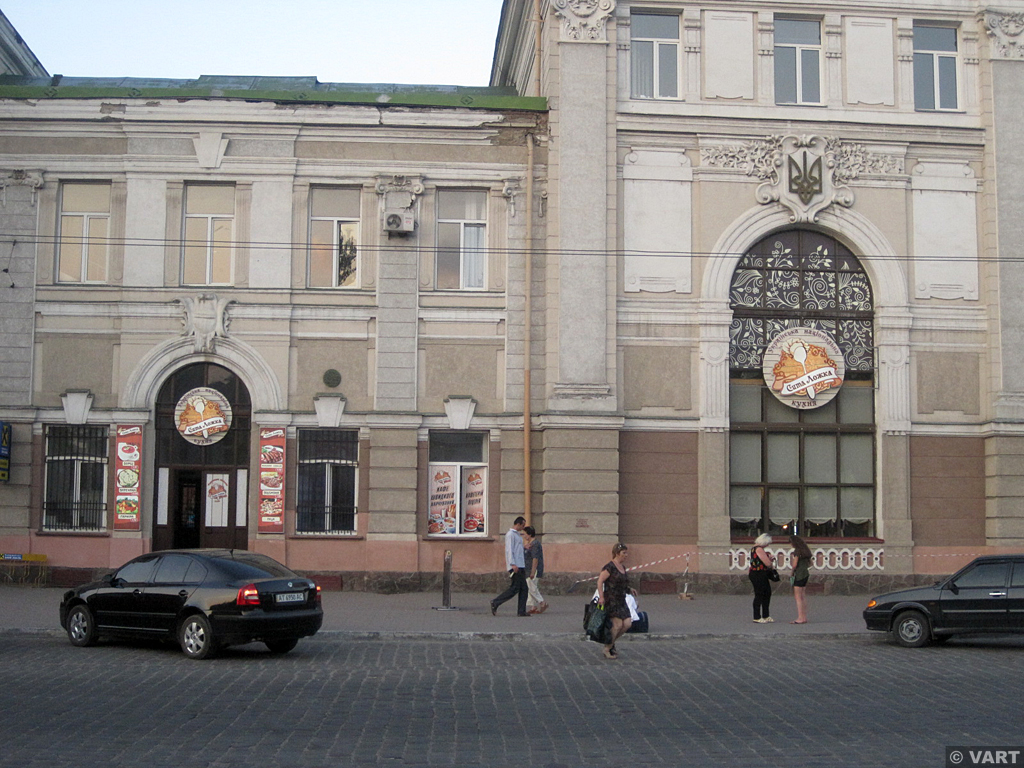 "Нове кафе на місці вокзального ресторану відкрилось давно і весь цей час викликало в мене якусь підозру, тільки сьогодні зміг туди навідатись. Перше, що кидається в очі це ось цей пістрявий розпис на склі, вивіска ще може бути, хоч і великувата. Однак жахнувся я всередині, вони спаплюжили об'ємно-просторову структуру вокзалу, влаштувавши нове перекриття поділивши цим зал на два поверхи. Також знищили дуже класні попередні інтер'єри, не впевнений до кінця в їх автентичності, та все ж той класичний декор зі сграфіто дуже добре підходив для нашого вокзалу".