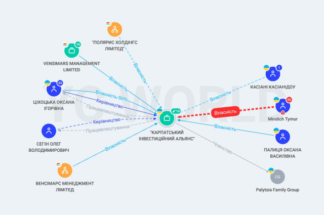 Структури Палиці поєднані також із компаніями, які раніше належали Тимуру Міндічу — співзасновнику студії «Квартал-95» та бізнес-партнеру Ігоря Коломойського.
