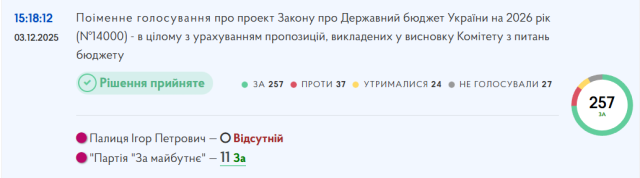 Фракція «За майбутнє», яку очолює Палиця, 3 грудня підтримала проєкт держбюджету-2026 — разом зі «Слугою народу». Саме в бюджет закладено фінансування дорожніх проєктів на Прикарпатті, а також низку соціальних програм, які можуть використовуватися як елементи передвиборчої кампанії.