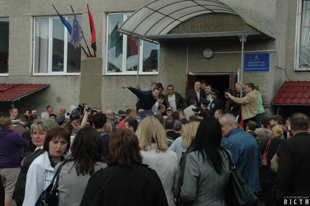 Як уже повідомлялося, в четвер зранку у Коломиї активісти «Правого сектору» та Самооборони на знак протесту проти призначення нового голови райдержадміністрації заблокували вхід до адмінбудівлі та в’їзд на саме подвір’я.