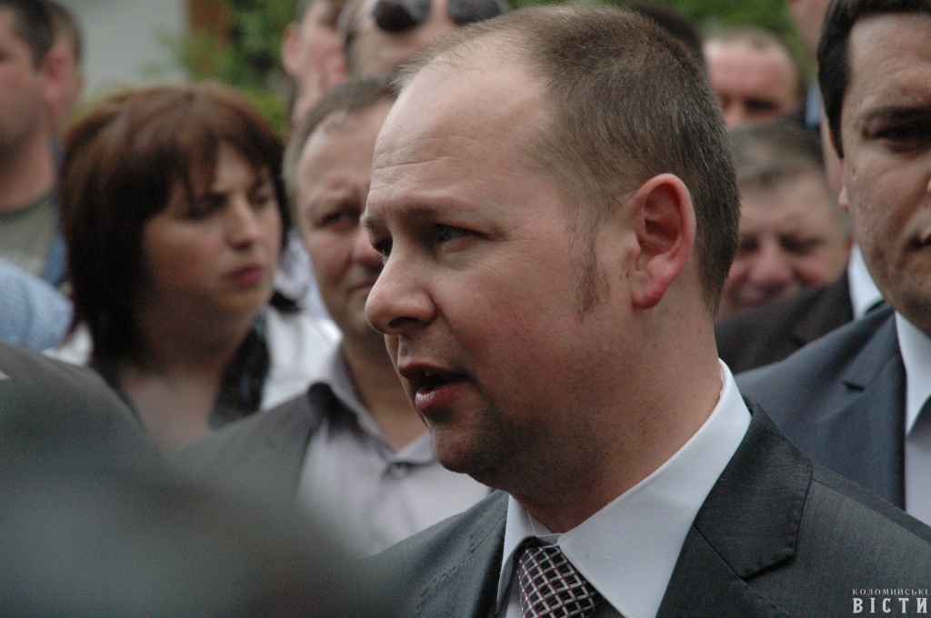 Після обіду до Коломиї на представлення нового керівника РДА прибули голова ОДА Андрій Троценко, перший заступник облради Олександр Левицький та нардеп Дмитро Шлемко. Пікетувальники відмовилися їх впускати всередину.