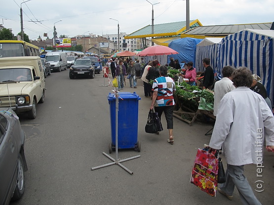 На вулиці Дністровській в Івано-Франківську облаштували площадку для торговлі саджанцями. Частину вулиці відгородили стрічкою і смітниками.