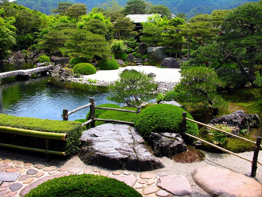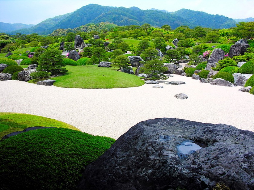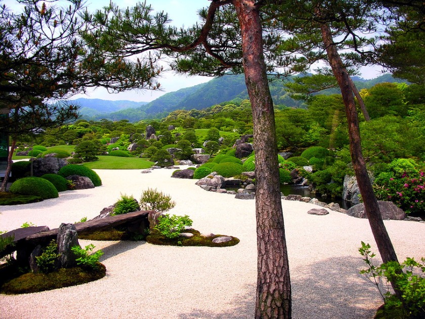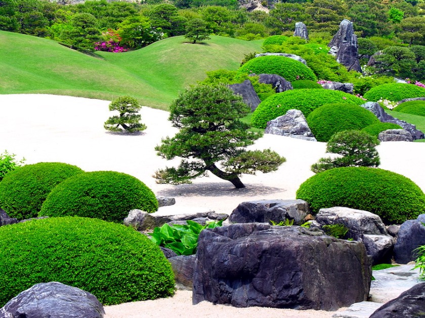 У 1980 році в Японії заснували художній музей Адачі. Його творець Адачі Зенко подорожував по Японії і збирав різні сорти хвойних рослин, мохи і камені для свого саду. У проекті Адачі органічно об'єднав 2 свої захоплення - японське мистецтво і дизайн саду...