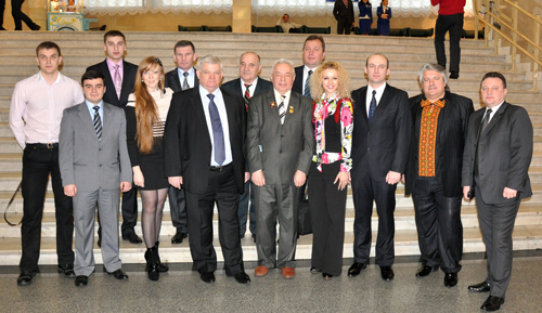 Спочатку Президент Віктор Янукович поклав квіти до пам’ятників Тарасу Шевченку та Михайлу Грушевському. Після покладання квітів учасники церемонії відбули до Національного палацу мистецтв "Україна", де взяли участь в урочистому зібранні.