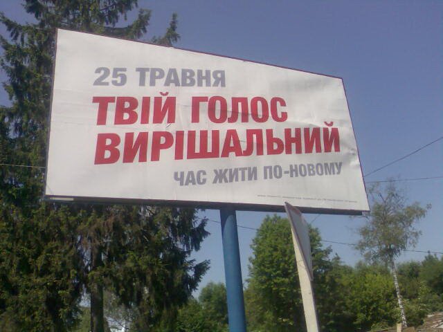 Йдеться про білборди з написами "25 травня. Твій голос вирішальний. Час жити по-новому". Відповідальна особа, вказана на білбордах, — Порошенко П. О.