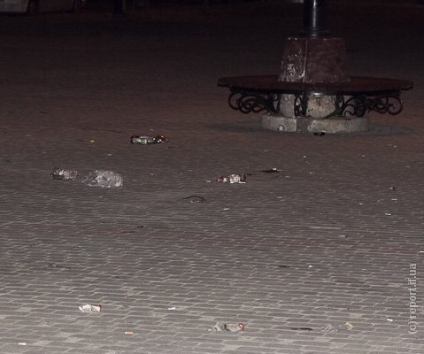 В неділю вночі, 12 травня, на центральних вулицях і площах Івано-Франківська залишилось дуже багато сміття після різноманітних святкових заходів, приурочених до Дня міста.