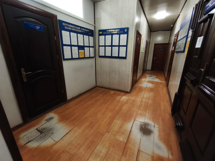 відсутній ізольований маршрут конвоювання обвинувачених від службового входу до зали засідань — підсудних проводять загальним коридором, доступним для сторонніх осіб, що створює ризики для їхньої безпеки;