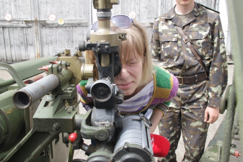 Знімальній групі дозволили не тільки дивитись зі сторони за ходом дій, але й посадили у самохідну установку 2С3 «акація», продемонстрували як працюють приціли у протитанковій гарматі «рапіра», як розгортається у бойове положення бойова машина БМ-21 «град». А на довершення журналіста каналу Ірину Панчишин, яка вперше попала до військової частини навіть трішки прокатали на місці командира однієї з бойових машин.