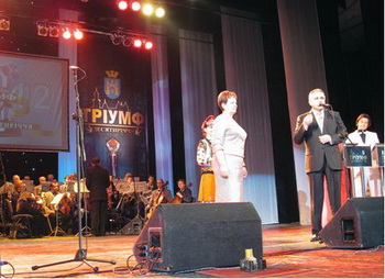 На ювілейній церемонії вшанування лідерів економічного розвитку «Тріумф десятиліття» переможця номінації привітав начальник ДПІ у Івано-Франківську Дмитро Романюк.