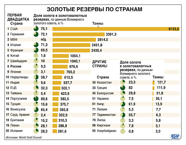 Заметьте, речь идет о золотом запасе не России, а организации «Банк России», которая принимает решения автономно от государственной власти. В СССР, между прочим, большая часть золота находилась в ведении министерства финансов. Сегодня золота в закромах Минфина крайне мало. Все накапливается в закромах, которые не подконтрольны правительству.