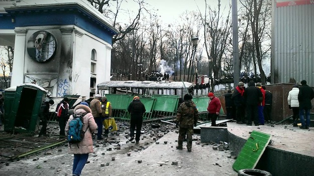 Декілька годин тривали сутички активістів із бійцями внутрішніх військ і спецзагонів.