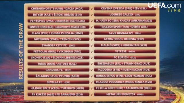 Нагадаємо, з цієї стадії стартує донецький "Металург". Донеччани зіграють проти переможця дуелі "Кукес" (Албанія) - "Сараєво" (Боснія та Герцеговина). Свого суперника отримав і "Чорноморець". В разі перемоги в двоматчевому протистоянні з "Дачією" одесити зіграють проти переможця пари "Црвена Звезда" (Сербія) - "Вестманнаейя" (Ісландія).