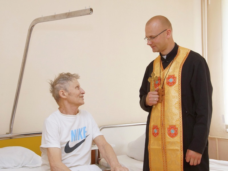 Представники Української греко-католицької церкви зустрічаються з пораненими військовими, проводять молебні за їхнє скоріше одужання, пригощають освяченою водою, благословляють та просто спілкуються з хлопцями, пишуть visty.in.uа.