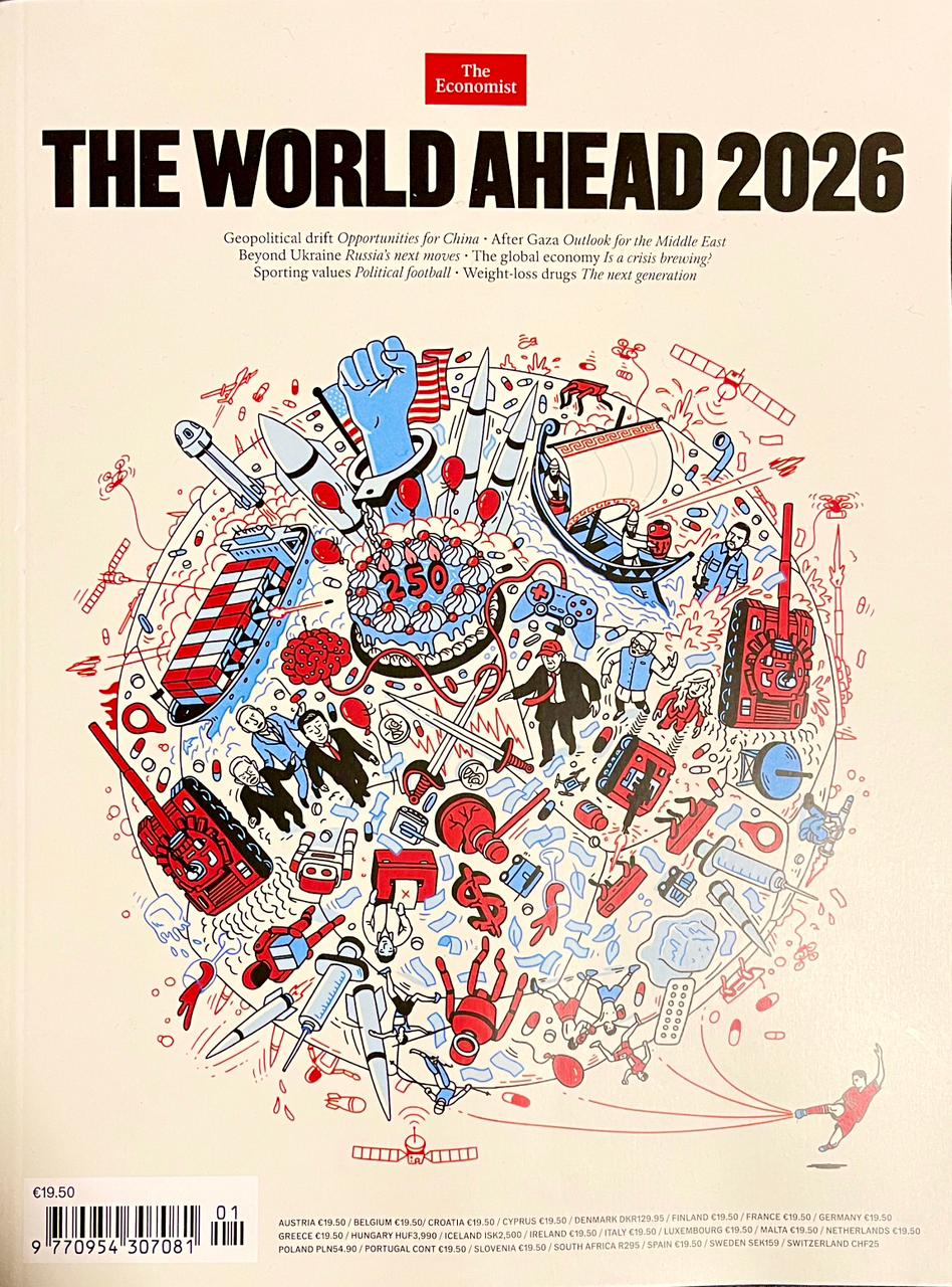 Обкладинка The Economist з прогнозом на 2026 рік виглядає доволі хаотично.