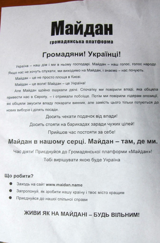10 січня, в центрі Івано-Франківська молоді люди, які представлялися представниками громадянської платформи «Майдан», збирали анкетні дані про перехожих.