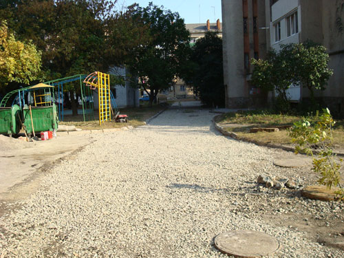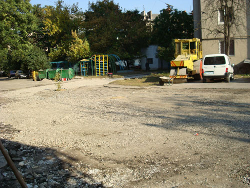 За словами представника фірми підрядника у даному дворі будуть заасфальтовані ділянки загальною площею 1000 кв.м. Роботи проводяться за ініціативою депутата міської ради від фракції ВО «Свобода» Сергія Стефанка.