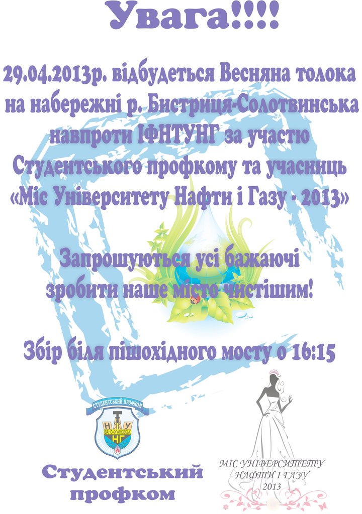 В акції візьме участь Студентський профком та учасниці «Міс Нафти і Газу 2013».