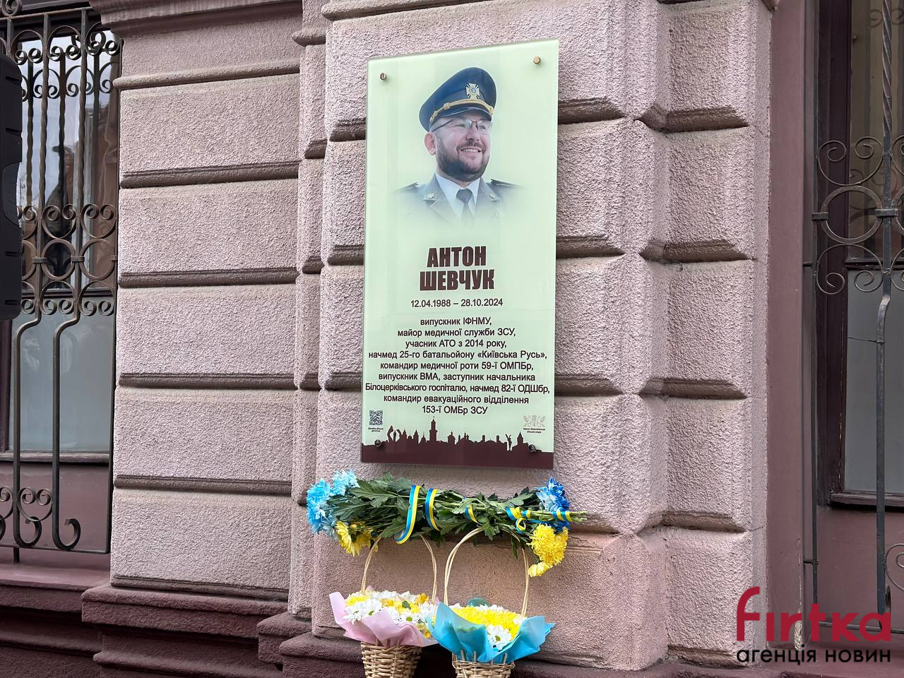 На фасаді Івано-Франківського національного медичного університету відкрили анотаційні дошки на честь полеглих випускників — Антона Шевчука, Андрія Котика, Олександра Ковча, Андрія Музики, Олега Сютрика.