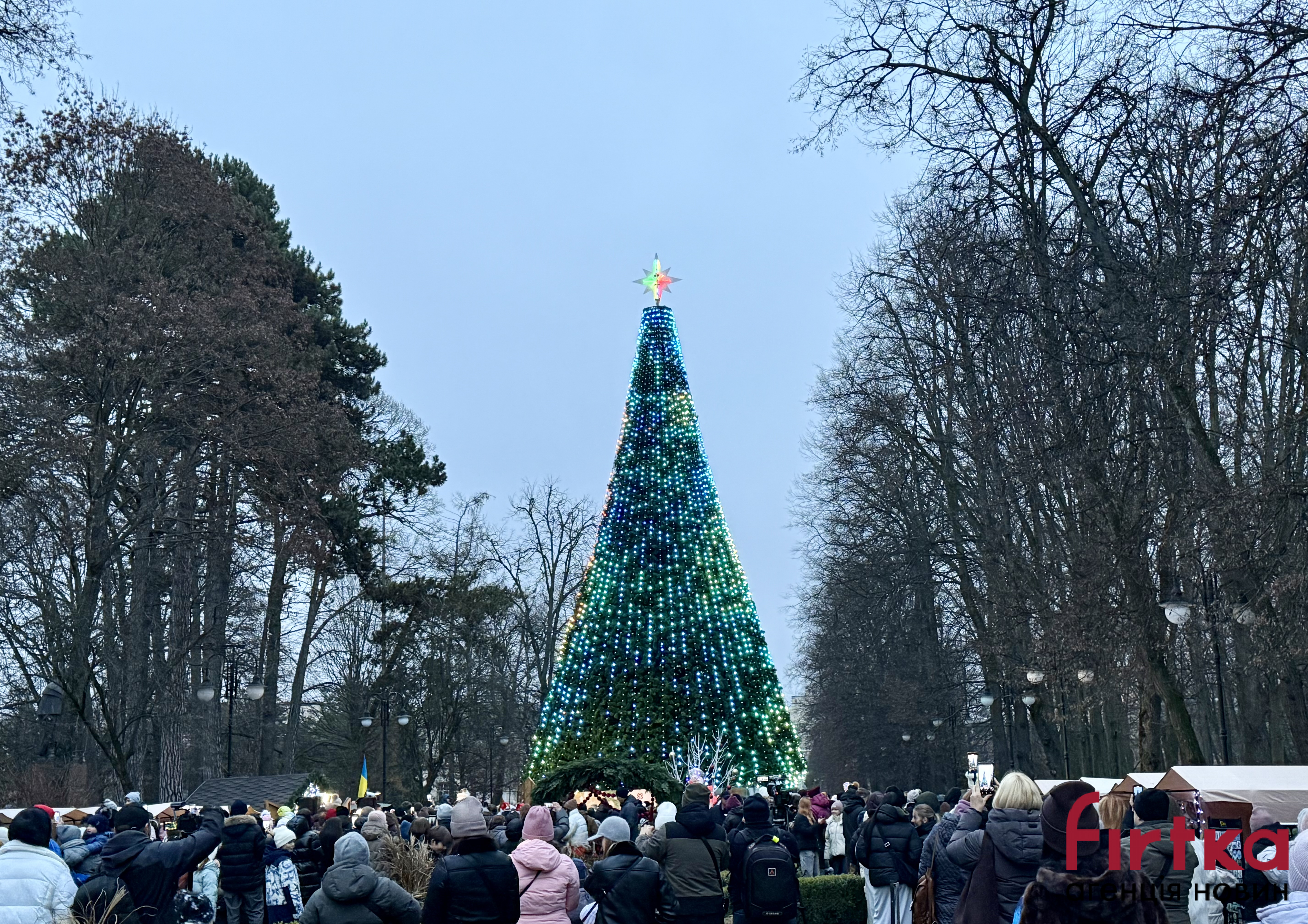 Так, головну ялинку міста, як і минулого року, розмістили у міському парку імені Тараса Шевченка. На відкриття зібралися іванофранківці та гості міста.