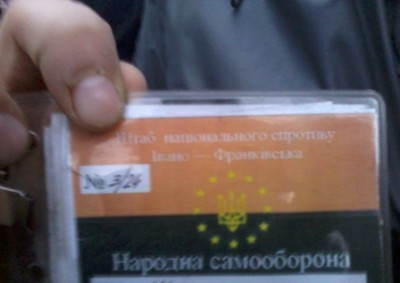 «Сам я працюю недалеко від місця ДТП. І коли побачив велике скупчення народу біля зупинки. Коли я вийшов туди подивитись, то побачив, що біля машини стоять хлопці. Коли підійшов ближче, то побачив, що у машини уся права сторона, зокрема крило вдарене. Деякі з хлопців, які були причетні до аварії почали когось видзвонювати і через деякий час приїздить Самооборона. Коли я захотів сфотографувати бейджики вони почали дратуватись і все мало не дійшло до бійки. Після довгої розмови я все таки зробив фотографії бейджиків та номерів машини. Після чого вони постояли декілька хвилин і побачивши, що люди також почали виступати проти них і вони сіли у свою машину і поїхали», - розповів очевидець.