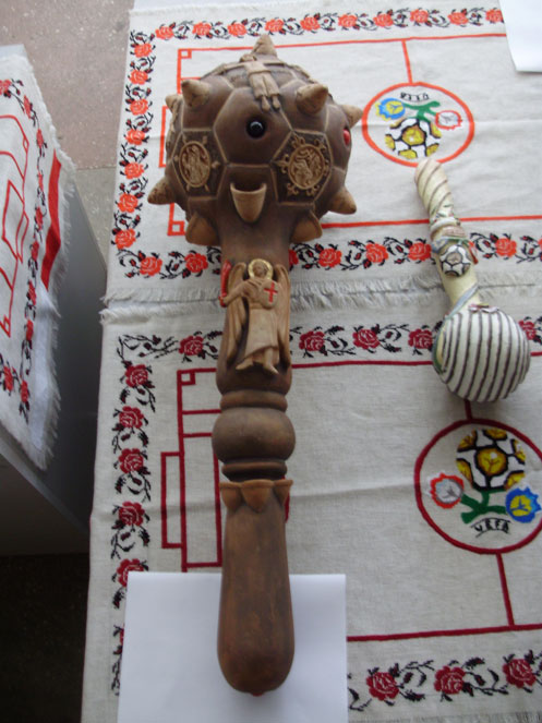 Ці керамічні жезли вагою до 5 кілограмів отримають визначні особистості на футбольній Європершості. У списку обраних - футбольний тренер Михайло Лобановський, поетеса Ліна Костенко, Президент України Віктор Янукович.