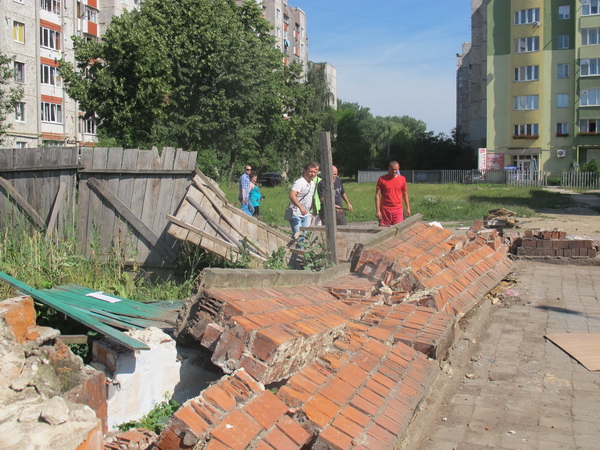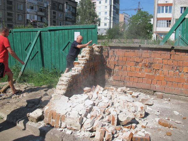 Мешканці прилеглого двору на Хоткевича 75,а — 67,а взялися за руйнування загорожі для смітника, який на цьому місці облаштували більше 20 років тому.