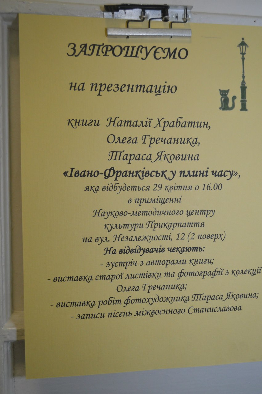"Івано-Франківськ у плині часу" - книжка трьох авторів краєзнавця Наталії Храбатин, колекціонера і педагога Олега Гречаника та фотохудожника Тараса Яковина.