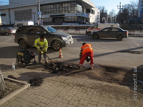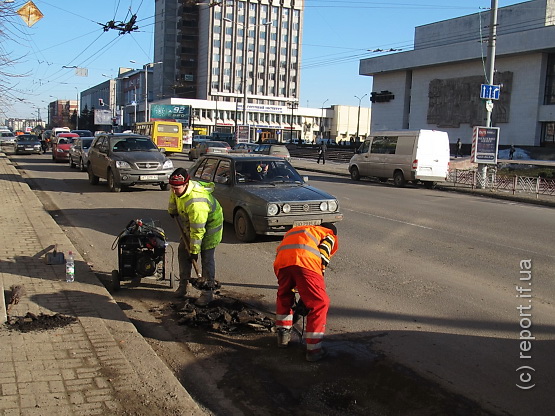 Вчора, 28 лютого, в Івано-Франківську на вулиці Незалежності дорожники розпочали ямковий ремонт асфальту.