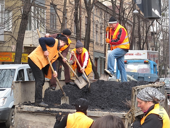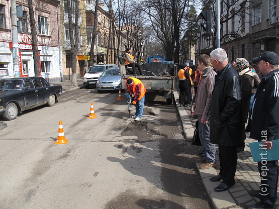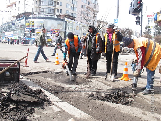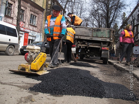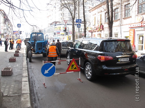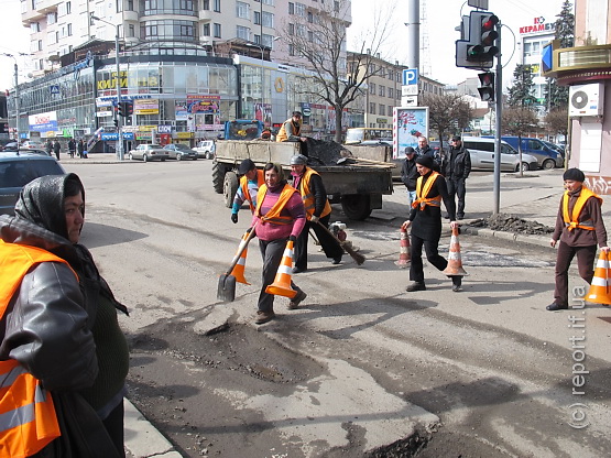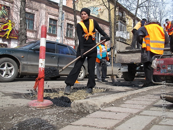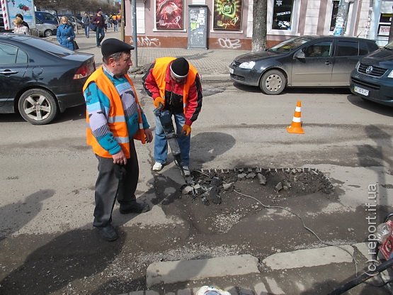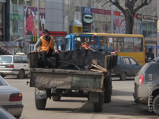 Сьогодні, 10 квітня, в Івано-Франківську на перехресті Франка і Незалежності розпочали ямковий ремонт дороги.