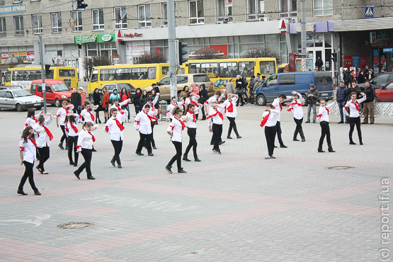 У вівторок, 9 квітня, у центрі Івано-Франківська відбувся флешмоб — місцеві студенти станцювали груповий танець, аби заохотити народ до здачі крові.
