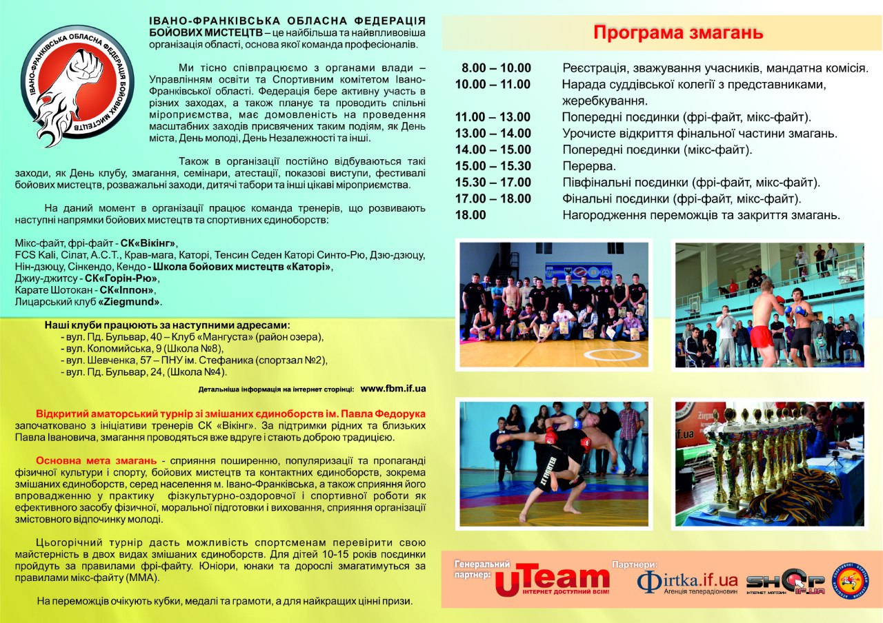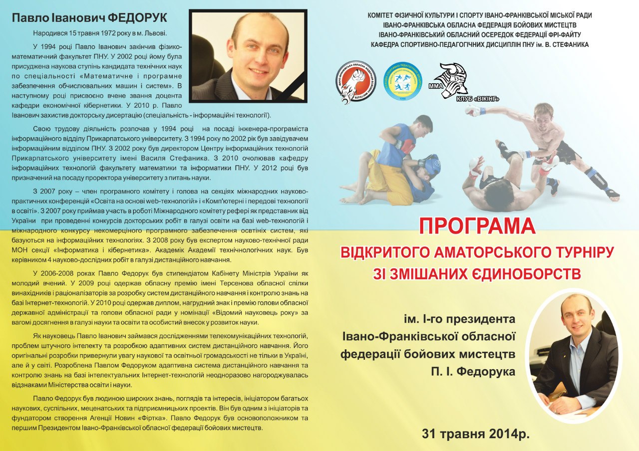 В суботу, 31 травня, відбудеться меморіальний турнір із змішаних єдиноборств пам'яті видатного українського науковця професора, першого президента Івано-Франківської обласної федерації бойових мистецтв Павла Федорука.