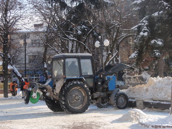 Це грейдери, які розчищають автошляхи, трактори які прибирають від снігу центральну частину міста та піскорозкидуючі машини.