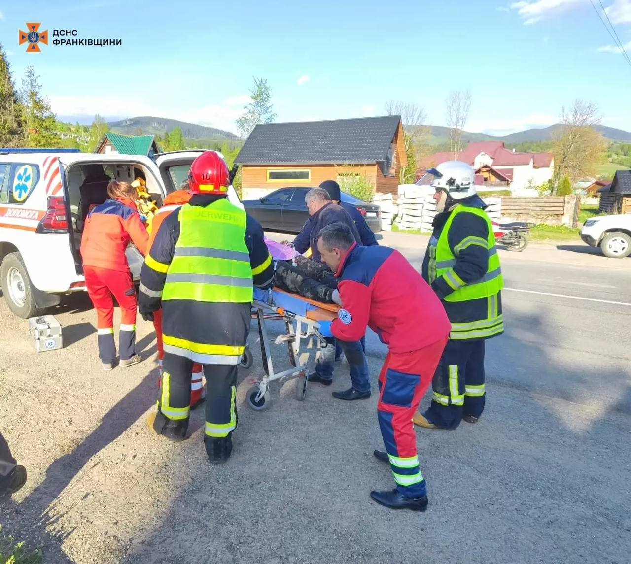 На місці ДТП рятувальники транспортували постраждалу особу до автомобіля екстреної медичної допомоги, а також від'єднали клеми акумуляторної батареї транспортного засобу, щоб запобігти виникненню пожежі.