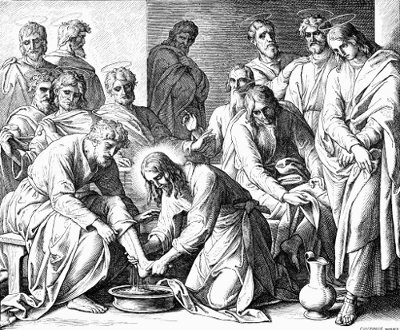 Ввечері Христос із учнями прийшов у приготоване місце. Зняв із себе одежу, налив у миску води, і почав омивати ноги учням. Вони обурювалися та відмовлялися. Господь, закінчивши справу, сказав: «Ви називаєте Мене Учителем та Господом, правильно називаєте. Отож, якщо Я, Господь та Учитель ваш, помив вам ноги, то і ви так само маєте чинити поміж собою…» Смирення. Не вважати за приниження служити брату, навіть нижчому за себе.