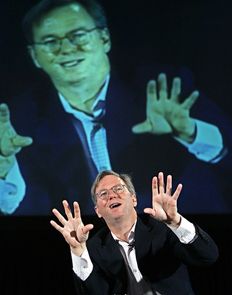 В одном из своих выступлений Эрик Шмидт заявил: «Мы не нуждаемся в том, чтобы вы нажимали на все клавиши в вашем компьютере. Мы знаем, где вы находитесь и где вы были. Мы можем узнать в общих чертах, о чём вы думаете. Мне кажется, что большинство людей не хочет, чтобы Google отвечал на их вопросы, а им хочется, чтобы он указал им, что они должны делать... Мы знаем всё, что вы делаете, и правительство может за вами наблюдать. Мы узнаем, где вы находитесь в районе 50 см, и мы сократим это расстояние до нескольких сантиметров... Ваша машина будет вести вас сама, и это неправильно, что машины были изобретены до компьютеров... Вы никогда не бываете одни, и вам не скучно...» (6)