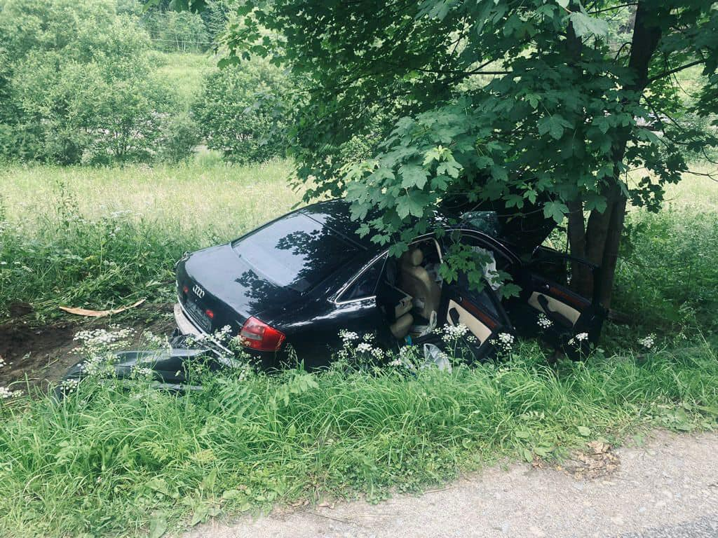 Попередньо встановили, що 27-річний водій "Ауді А6", мешканець Києва, рухався зі сторони Микуличина в напрямку Яремче. На заокругленій ділянці дороги водій виїхав за межі дороги ліворуч, де наїхав на дорожнє огородження та придорожнє дерево.