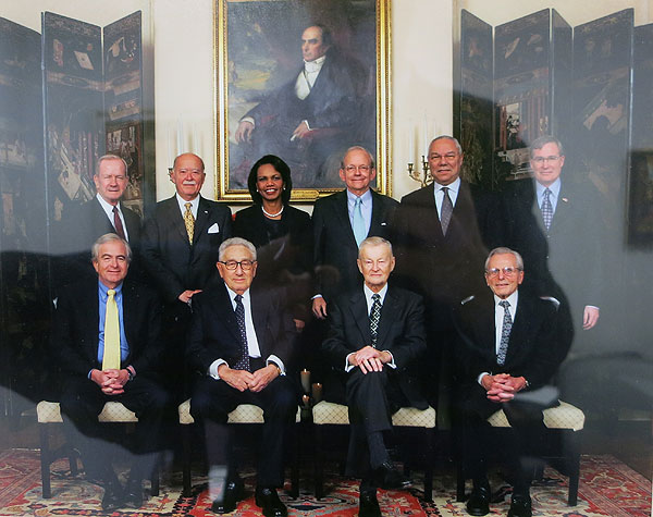 | Радники президентів США з національної безпеки. Бжезинський сидить праворуч від Кіссінджера. Фото з кабінету Бжезинського |