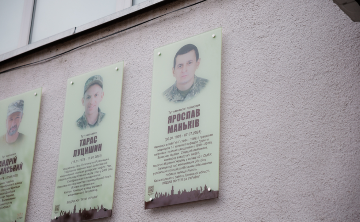 На фасаді головного корпусу Івано-Франківського національного технічного університету нафти і газу з’явилася ще одна меморіальна дошка — на честь випускника та працівника університету, захисника Ярослава Маньківа.